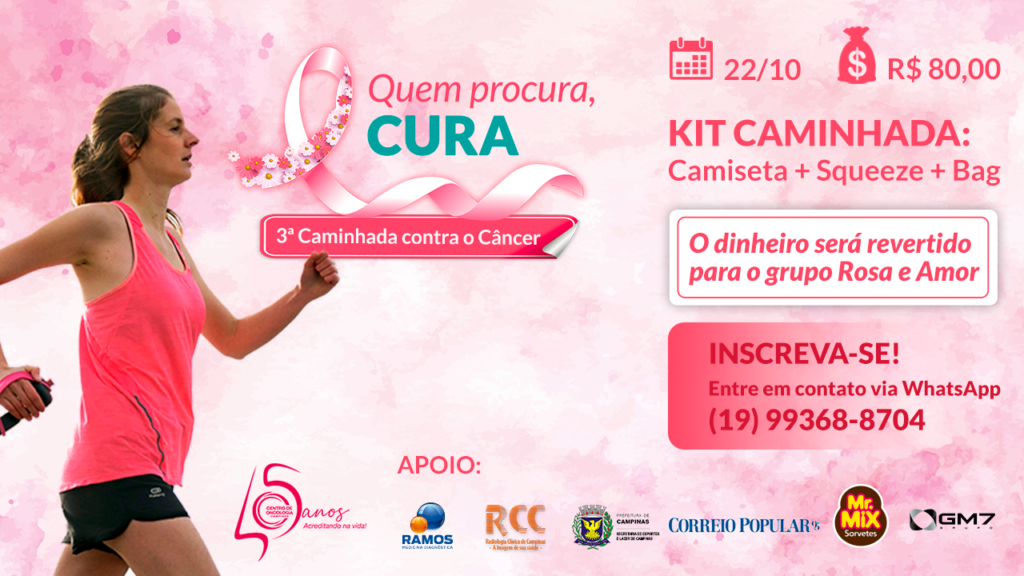 Inscrições abertas para a 3ª Caminhada do Centro de Oncologia Campinas A 3ª Caminhada do Centro de Oncologia Campinas será realizada no dia 22 de outubro, sá...