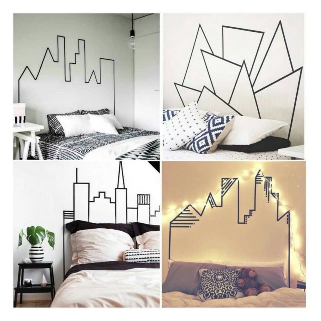 Brincar com a fita é o jeito mais fácil de se ter ideias para novas decorações. É possível criar molduras para alguns objetos que você quer destacar em sua casa como instrumentos musicais na parede ou vasos de flor. Você pode criar também cabeceiras de camas incríveis com a fita, simulando prédios, letras de música ou formas geométricas.
