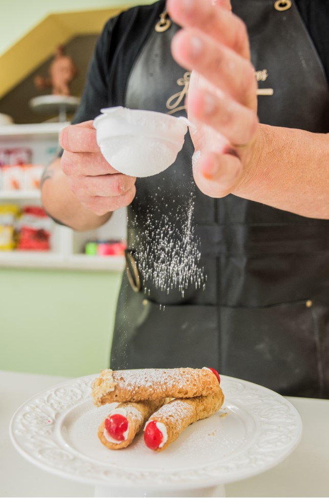 “O Cannoli é uma receita de panificação, com uma massa rústica que não leva fermento. Para atingir a condição ideal é preciso deixá-la em ponto de véu – quando fica quase translúcida – e assim dobrar e fazer camadas. O uso da Grappa – cachaça do bagaço de uva – é essencial para a formação de bolhas na hora da fritura”, conclui.\r