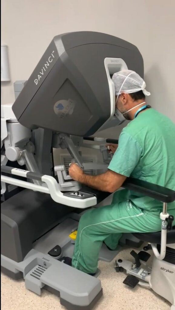 Além do paciente e de sua família, a tecnologia também beneficia o médico. O robô filtra tremores, permite uma visão em alta definição para o doutor habilitado e maior escala de mobilidade, propiciando incisões menores, destreza e diminuição das chances de complicações. E ele ressalta ainda: "Nós operamos sentados, com o conforto do console do robô. Não há mais aquela fadiga de operar três ou quatro horas de pé, diminuindo o nosso rendimento. Isso ajuda muito também o cirurgião", explica o Dr. Garcia, que teve a assistência do Dr. Sandro Faria, conceituado e experiente especialista em cirurgia robótica.