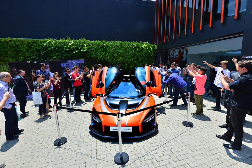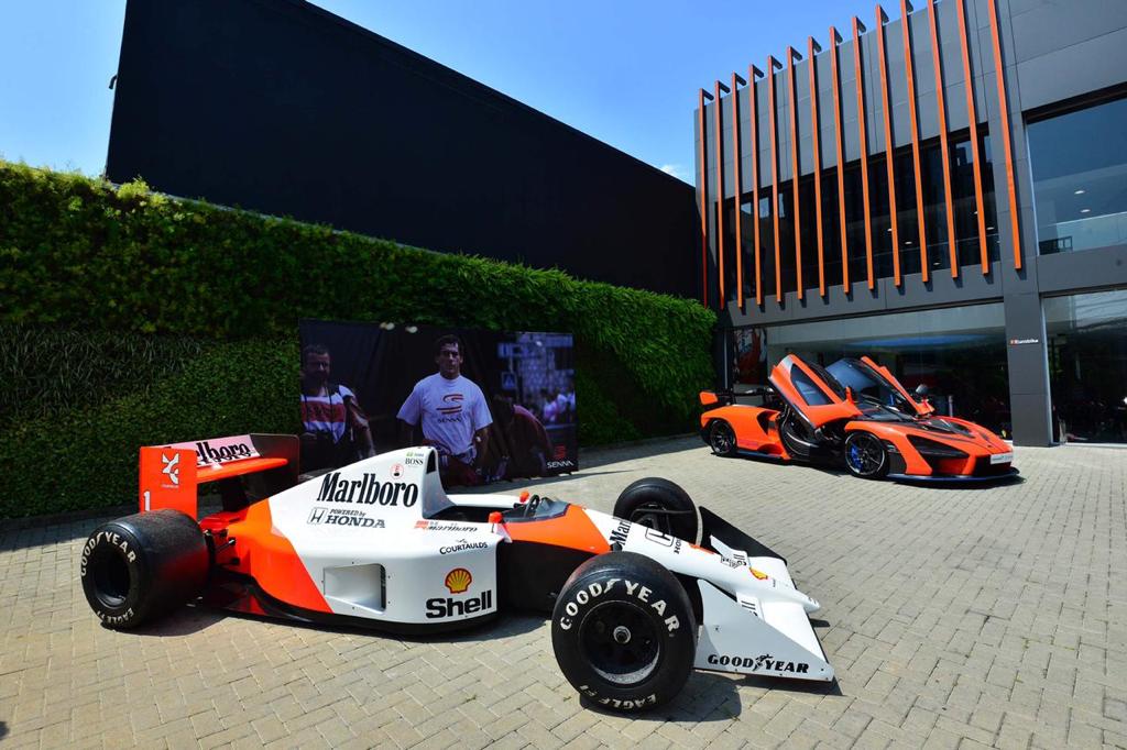 Ao lado do F-1 ficou exposto outro veículo de parar o trânsito: o McLaren Senna, o novo superesportivo inspirado no comportamento diferenciado e competitivo do tricampeão mundial da Fórmula 1, que traz incrível motor com 800 cavalos de potência e uma invejável aerodinâmica com downforce de 800kg, igual aos competitivos modelos de F-1.\r
