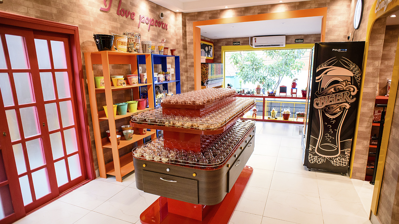 A loja conta com um espaço de produtos relacionados com pipoca, incluindo uma linha de camisetas temáticas e com opções para montar cestas de presentes para amantes do produto. Em breve, a pipocaria ganhará um espaço kids e uma área dedicada a negócios, ideal para reuniões, com Wi-FI gratuito.