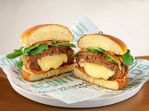 E para quem gosta de um hambúrguer diferentão, o Chicken-Chicken Sandwich, disponível apenas nos restaurantes físicos da marca, localizados em São Paulo e no Rio de Janeiro, é a escolha certa. Frangão, pão e frangão de novo: dois pedaços de peito de frango empanados e crocantes, recheados com uma fatia de pão de forma, alface, tomate, queijo tipo Emmental e um molho Sweet Pepper para exaltar o sabor.