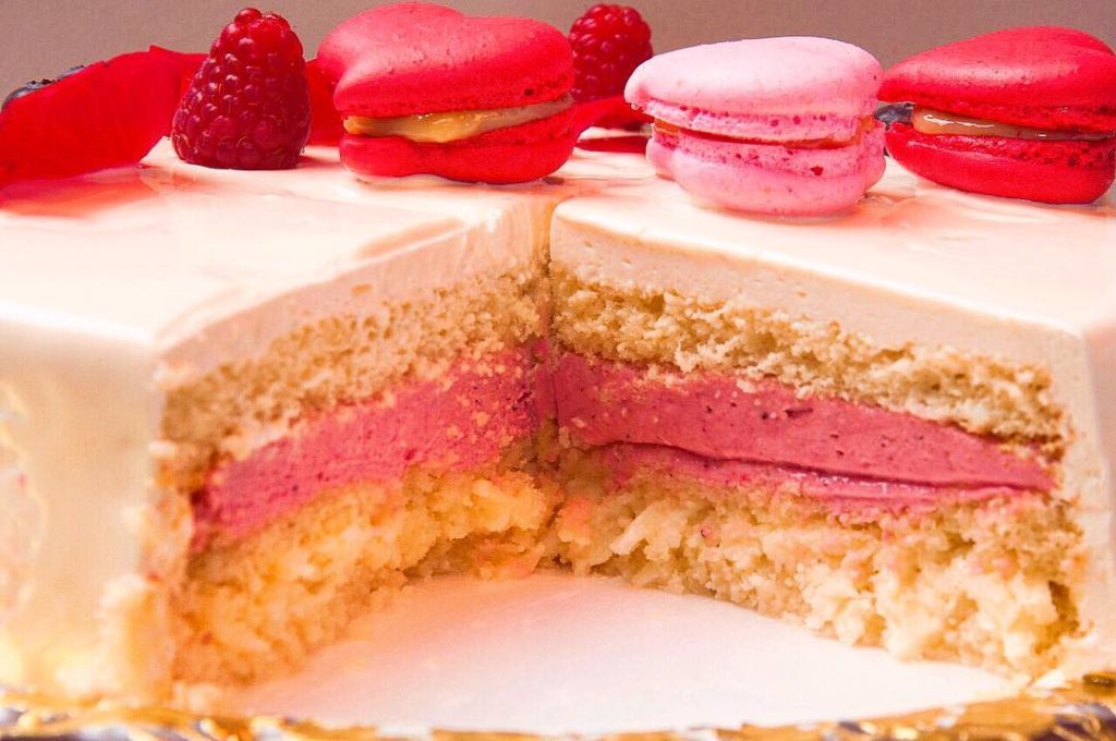Além de toda a beleza, o sabor também não deixa a desejar. O bolo é preparado com pão de ló especial branco, cocada mole, mousse de blueberry, cobertura glacê espelhada de chocolate branco, além de ser todo decorado com frutas vermelhas e macarons em forma de coração.\r