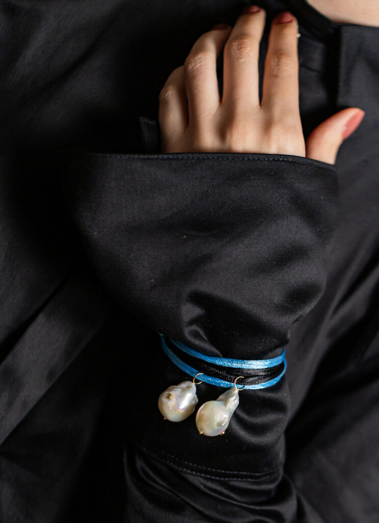 A joia, desenhada com a delicadeza e a paixão de Rodrigo Gaspar, combina a pérola barroca, de forma natural e orgânica, com a raríssima turmalina Paraíba, uma das pedras mais desejadas do mundo e resultou na criação de um pingente exclusivo, cheio de personalidade, que traz uma mensagem de esperança e amor ao próximo.