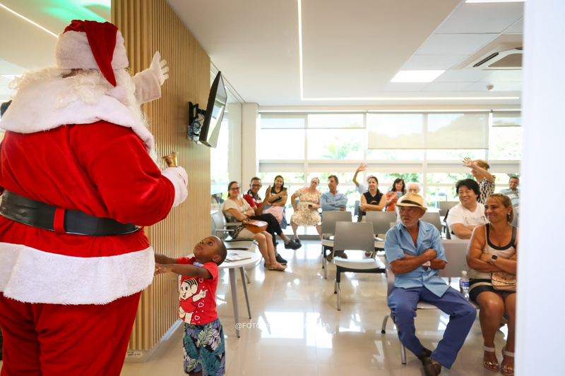 A tarde foi de intensa programação. Os pacientes passearam no caminhão dos bombeiros, brincaram na neve artificial, tiraram fotos com o Papai Noel (interpretado pelo empresário Anderson Censi) na linda decoração de Natal doada pelos empresários paulistanos Tom e Ana Paneguini, abriram brinquedos presenteados pela empresária Isa Santini, comeram comidas festivas da chef de cozinha Gisele Soldeira e receberam massagens oferecidas pela equipe do Spa Ateliê Beauty.