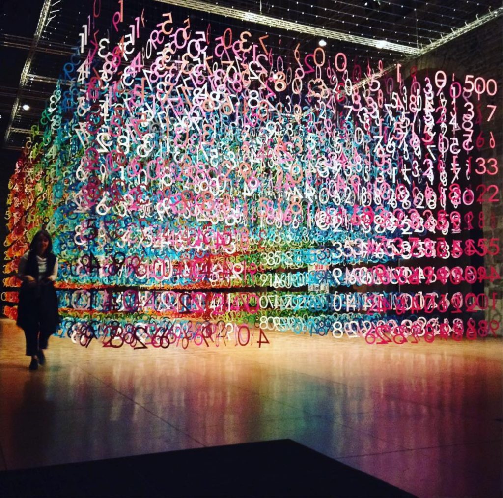 Todos os papéis foram alinhados por cor, dando a impressão de um grande arco íris. A instalação foi montada para que os visitantes pudessem andar entre essas letras e ver de pertinho o símbolo de cada uma. Além isso, uma experiência imersiva como essa, marca muito mais a lembrança do visitantes. A impressão é que nunca vamos cansar de olhar para tantas cores!!